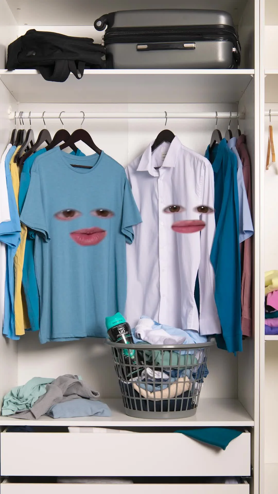 The shoot happened at PXP Studios in Chicago, with studio lights like key, fill, and backlights creating those bright, punchy visuals captured the viral trend of showing the eyes and mouth. I led the art direction, wardrobe and making sure talent nailed the lines.